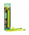 The Ticonderoga® beginner pencil that teachers and parents love in bright neon colors with a free sharpener! This triangular shaped, over sized pencil is ideal for children in the early stages of their writing development. The large size (13/32") is easy for small hands to hold while the naturally ergonomic, triangular shape helps teach correct pencil grip. Matching neon latex-free erasers. The thick graphite #2 core delivers a broad smooth line. Premium wood harvested from responsibly managed sources provides smooth, even sharpening with minimal breakage. Teachers prefer Ticonderoga® for its dependability and craftsmanship. Each pack includes 2 pencils in assorted neon colors (no color choice).