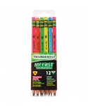 The Ticonderoga® beginner pencil that teachers and parents love in bright neon colors! This triangular shaped, over sized pencil is ideal for children in the early stages of their writing development. The large size (13/32") is easy for small hands to hold while the naturally ergonomic, triangular shape helps teach correct pencil grip. Matching neon latex-free erasers. The thick graphite #2 core delivers a broad smooth line. Premium wood harvested from responsibly managed sources provides smooth, even sharpening with minimal breakage. Teachers prefer Ticonderoga® for its dependability and craftsmanship. Each pack includes 12 pencils.