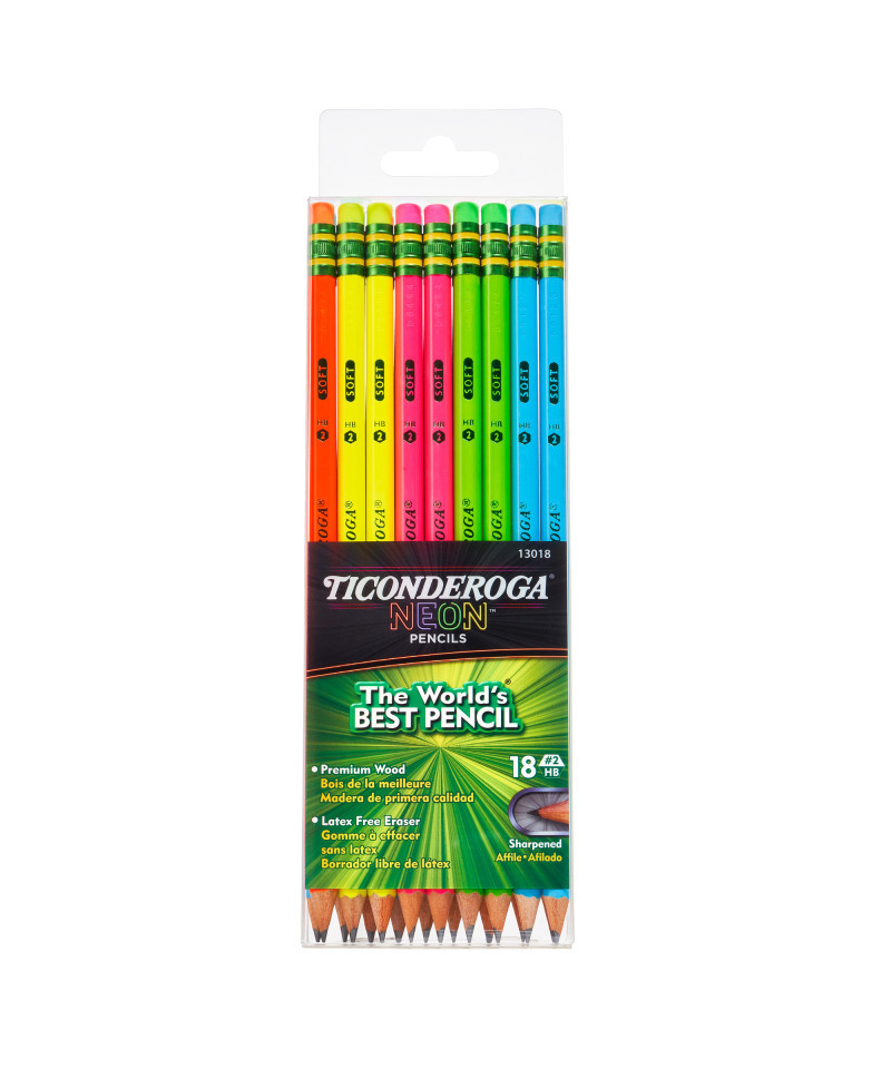 Ticonderoga® has a tradition of fine quality writing instruments in the US for over 100 years. The exclusive graphite core features a proprietary formula focusing on graphite mined from carefully controlled sources to deliver extra smooth performance. Top-quality latex-free erasers remove marks completely without smudging. Premium wood harvested from responsibly managed sources provides smooth, even sharpening with minimal breakage. Teachers prefer Ticonderoga for its dependability and craftsmanship. When only the best will do, choose Ticonderoga brand pencils. Each pack includes 18 pencils.