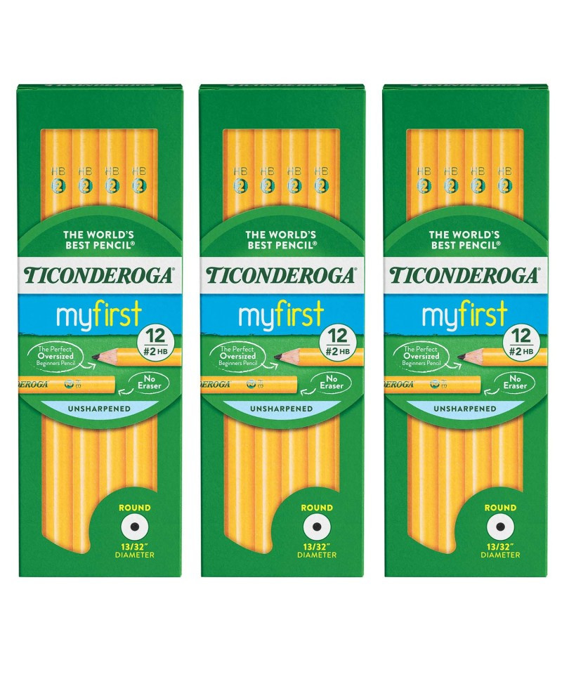 The teacher's favored choice for that important "first" No. 2 pencil. Large diameter 13/32". No eraser. PMA certified non-toxic. Made in the USA. Each box includes 12 pencils. Sold as 3 boxes for 36 pencils total.