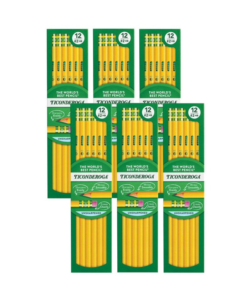 The Ticonderoga is the world's best selling pencil. Satin smooth finish enhances writing comfort. The exclusive graphite core formula give you extra smooth performance. Crafted from reforested California cedar. Top quality eraser provides, easy, clean correction. Each pack contains 12 pencils. Sold as 6 packs for a total of 72 pencils.
