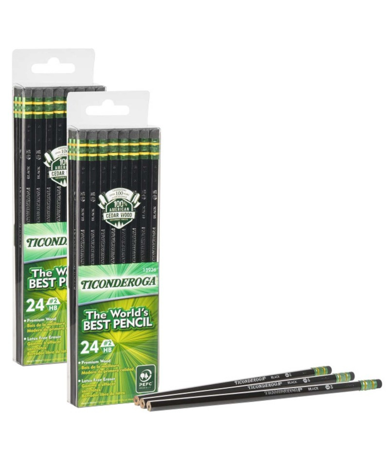 Ticonderoga® has a tradition of fine quality writing instruments in the US for over 100 years. The exclusive graphite core features a proprietary formula focusing on graphite mined from carefully controlled sources to deliver extra smooth performance. Top-quality latex-free erasers remove marks completely without smudging. Premium wood harvested from responsibly managed sources provides smooth, even sharpening with minimal breakage. Teachers prefer Ticonderoga® for its dependability and craftsmanship. When only the best will do, choose Ticonderoga® brand pencils. Each pack includes 24 pencils. Sold as 2 packs for a total of 48 pencils.