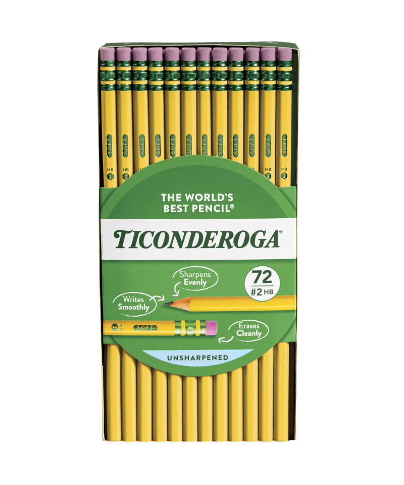 Ticonderoga® has a tradition of fine quality writing instruments in the US for over 100 years. The exclusive graphite core features a proprietary formula focusing on graphite mined from carefully controlled sources to deliver extra smooth performance. Top-quality latex-free erasers remove marks completely without smudging. Premium wood harvested from responsibly managed sources provides smooth, even sharpening with minimal breakage. Teachers prefer Ticonderoga® for its dependability and craftsmanship. When only the best will do, choose Ticonderoga® brand pencils. Box of 72 pencils.