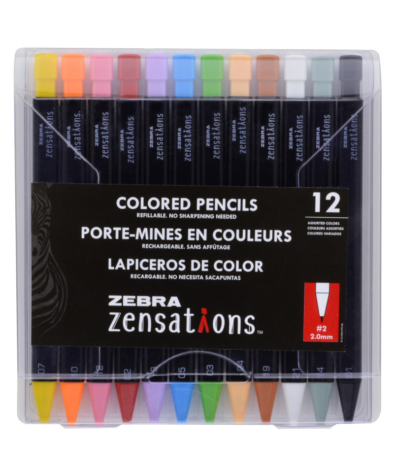 Zensations Refillable Mechanical Colored Pencils provide smooth, rich, vibrant colors that blend easily for shading and color mixtures. With a triangular barrel that is easy to hold, it provides excellent control while coloring or sketching. The 2.0mm lead is durable, long lasting and completely refillable! Each pack includes 12 mechanical colored pencils.