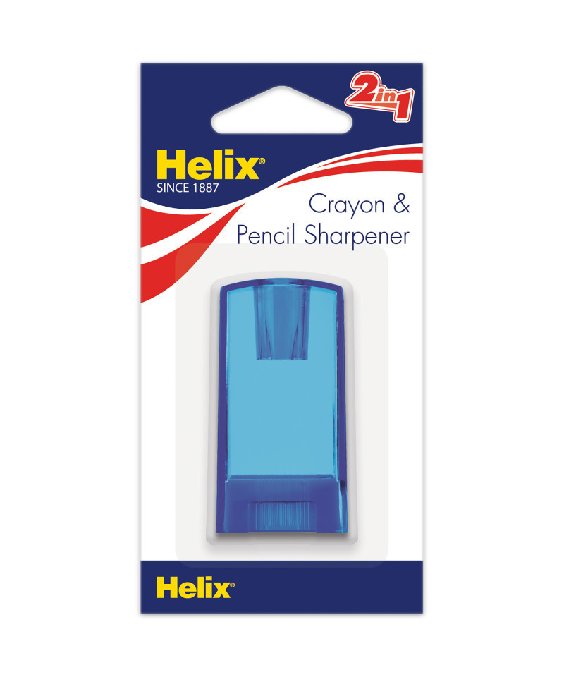 - The Helix Crayon and Pencil 2-Hole Canister Sharpener is perfect for young children because it sharpens Pencils and Wax Crayons!