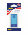 The Helix Crayon and Pencil 2-Hole Canister Sharpener is perfect for young children because it sharpens Pencils and Wax Crayons! The blade-free Crayon sharpener is molded into the top of the shavings canister making it a great, safe, option for young kids. And then built into the base is a high-quality pencil sharpener that easily sharpens all standard pencils. The integrated shatter-resistant canister keeps wax and wood shavings contained is translucent so you can see when it needs to be emptied. Sold individually in assorted colors Blue, Grey and Jade (no color choice).