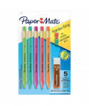 Learning to write is an important stage in every child's development, but writing products sold today are not designed with kids in mind. The Paper Mate Handwriting triangular mechanical pencil for kids provides control for early writers! The #2 triangle pencil has thick 1.3mm lead for less breakage and a triangular shape that guides finger placement. Plus, bright barrel colors make handwriting fun. Each pack includes 5 pencils, 2 erasers, and 1 lead set.