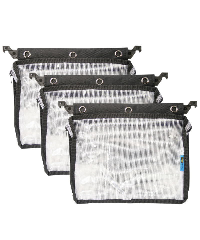 Expanding zipper pouch offers easy access and flexibility for storing office supplies and essentials. Contents stay secure with zipper closure. Letter-size hanging bar allows use in file cabinets or file totes. Pouch also features clear mesh for strength and easy identification of contents. Keep supplies neat and organized. Measures 9.75" x 13" x 1.25". Sold as a pack of 3 expanding zipper pouches.