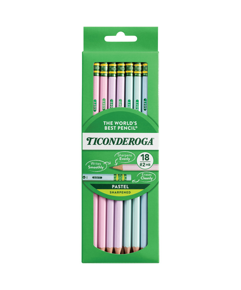 Ticonderoga® has a tradition of fine quality writing instruments in the US for over 100 years. The exclusive graphite core features a proprietary formula focusing on graphite mined from carefully controlled sources to deliver extra smooth performance. Top-quality latex-free erasers remove marks completely without smudging. Premium wood harvested from responsibly managed sources provides smooth, even sharpening with minimal breakage. Teachers prefer Ticonderoga for its dependability and craftmanship. When only the best will do, choose Ticonderoga brand pencils. Each pack includes 18 pencils.