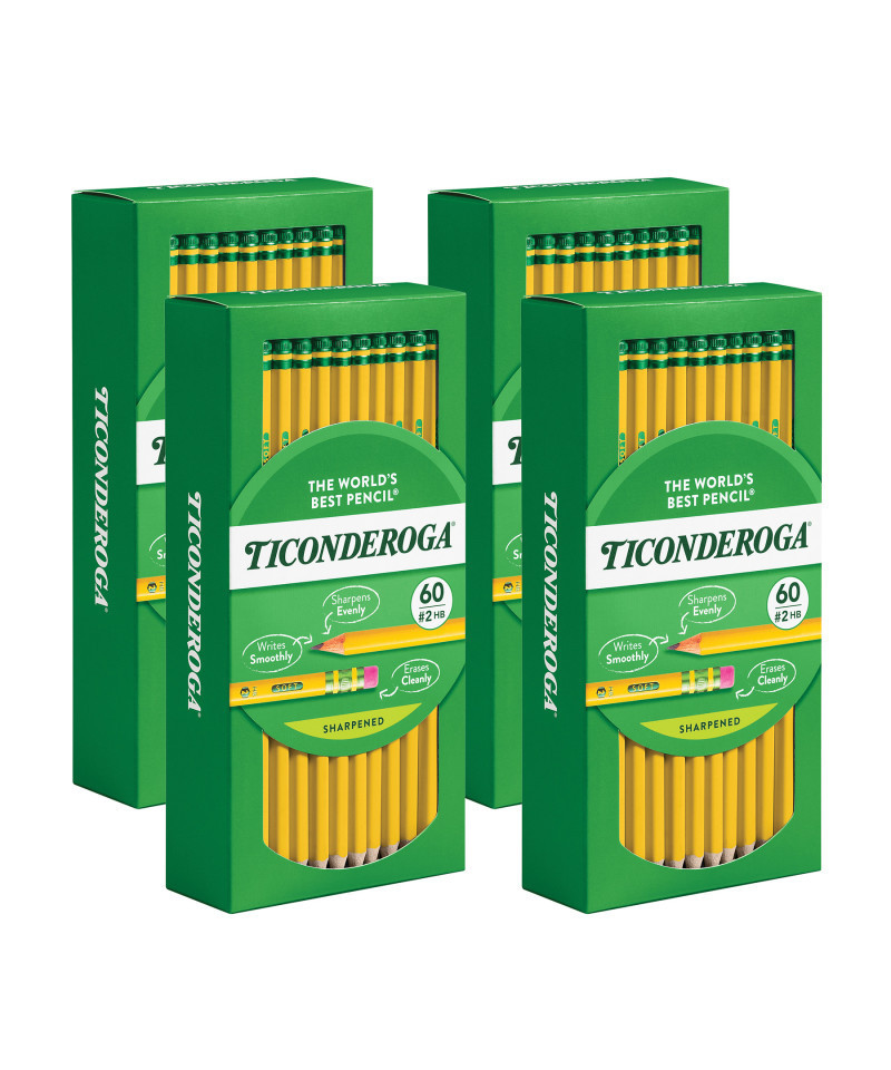 Ticonderoga® has a tradition of fine quality writing instruments in the US for over 100 years. The exclusive graphite core features a proprietary formula focusing on graphite mined from carefully controlled sources to deliver extra smooth performance. Top-quality latex-free erasers remove marks completely without smudging. Premium wood harvested from responsibly managed sources provides smooth, even sharpening with minimal breakage. These pencils are pre-sharpened to save you time and hassle. Teachers prefer Ticonderoga® for its dependability and craftmanship. When only the best will do, choose Ticonderoga® brand pencils. Each pack includes 240 pencils.