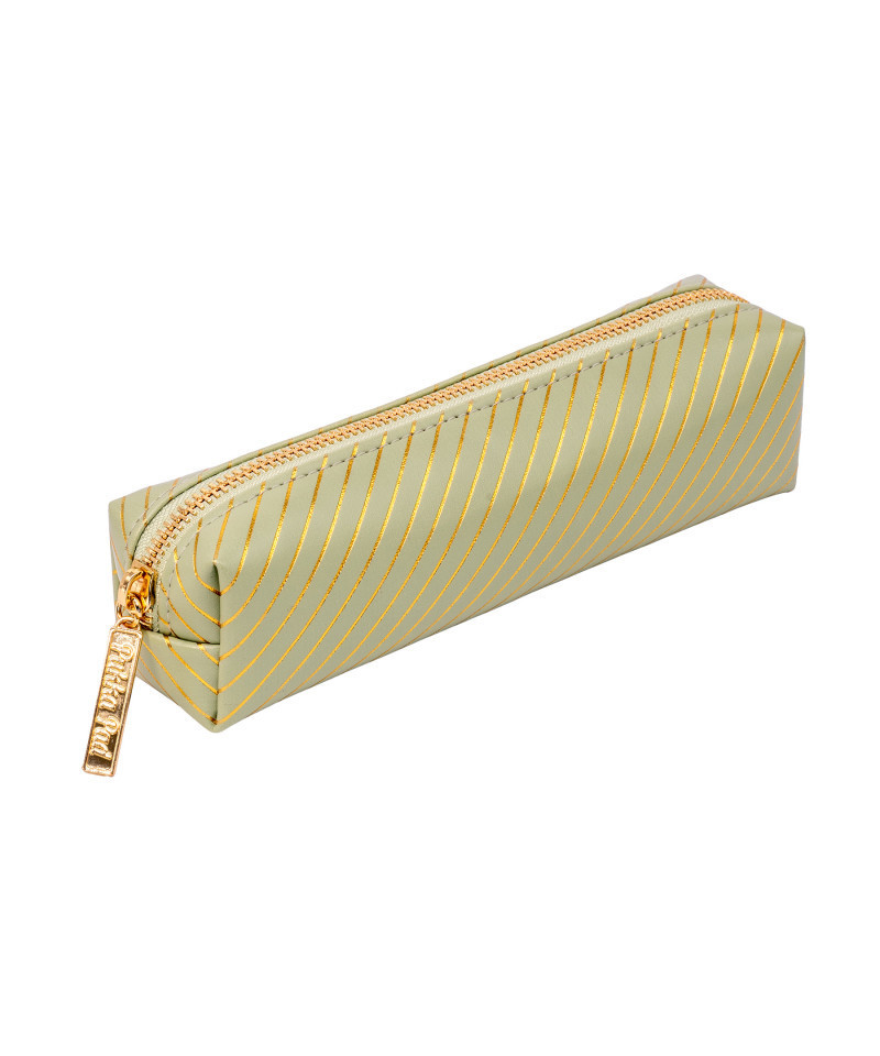 The pencil case is made from faux leather and includes a luxurious gold zip that is easy to open and close.