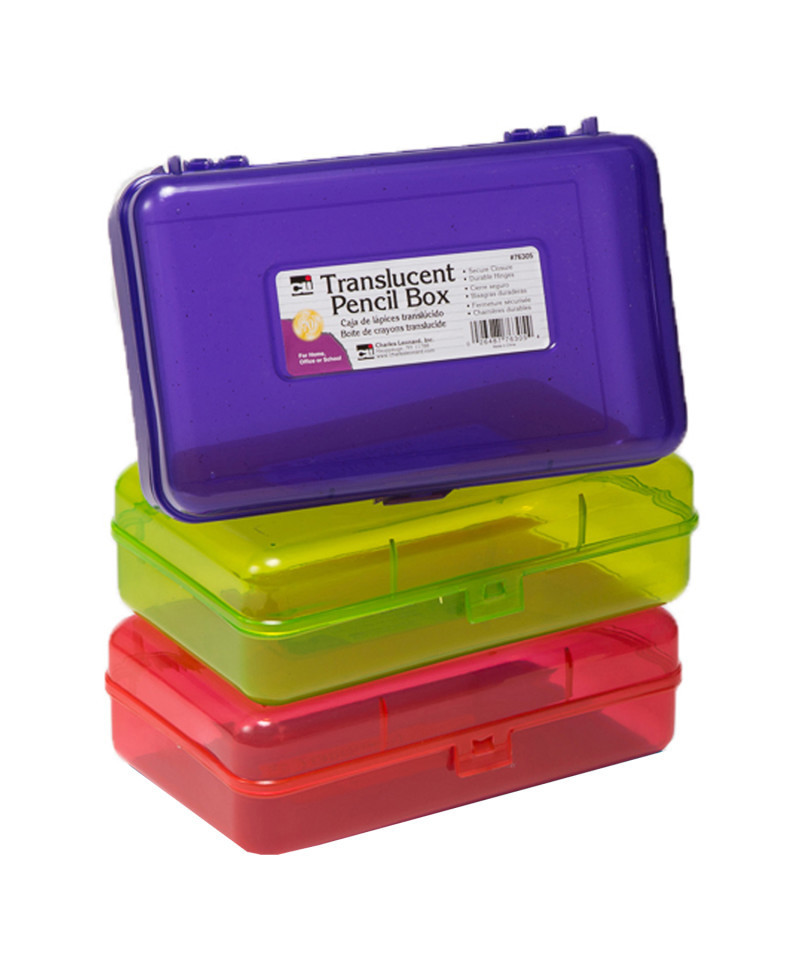 Keep your school supplies organized and within reach with this spacious and stylish pencil box. Measuring 8-1/4" wide, 5-1/4" deep, and 2-1/2" high, it offers plenty of room to hold pens, pencils, markers, erasers, and more. The translucent design comes in assorted vibrant colors, allowing you to easily see the contents from any angle without opening the lid. Durable and practical, this pencil box is perfect for students, teachers, or anyone needing a tidy storage solution. Sold as a pack of 3 in assorted colors (color selection is random; no color choice available).