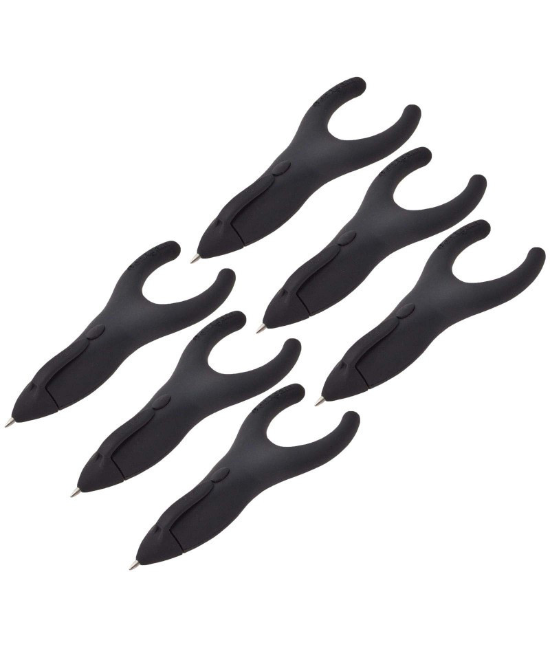PenAgain Ergosof pen will make writing a joy. The wishbone shape design encourages the time-tested " tripod" finger grip. This grasp is not only comfortable but is also more ergonomic. Whether you are right or left handed, the Ergosof pen will prevent sore fingers and tired wrists. The dynamic tripod pen hold has been shown to help children focus on the content of their writing rather than having to worry about their control of the pen or their speed of writing. Now they can express themselves through writing with ease. The pen is retractable so you won't have to worry about leaks. It has easy to replace refills so that you're never short of ink. This pen's black case makes it stand out above the rest. Helpful for Arthritis and Ehlers Danlos Syndrome patients. Each pen comes with two bonus refills. Black Ink, medium/1.0mm. Sold as a pack of 6 pens for a total of 6 pens and 12 refills.