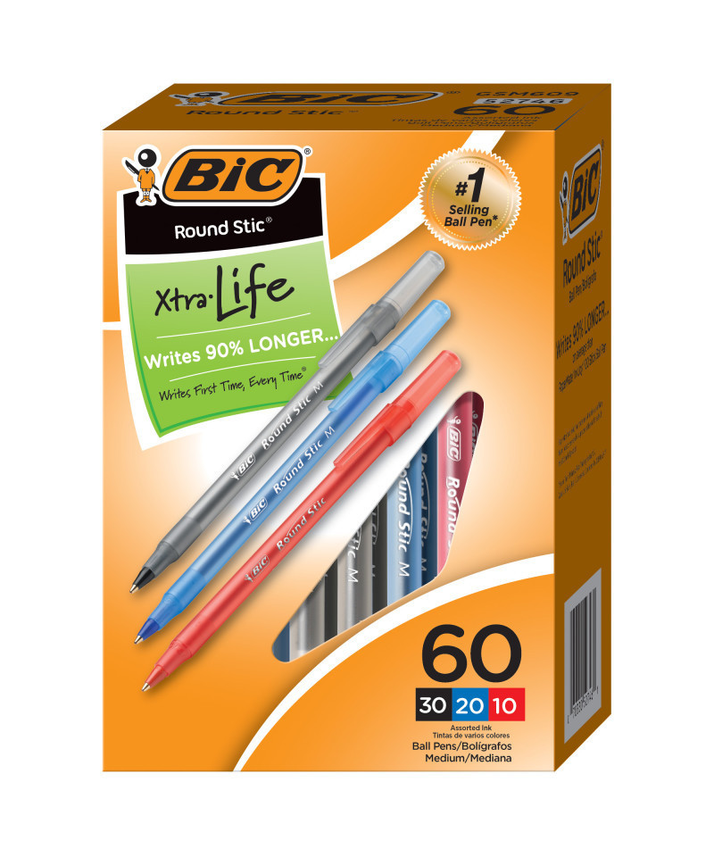 The BIC Round Stic Xtra Life Ball Pen is a dependable favorite that offers performance and value. This pen writes 90% longer on average than Papermate® InkJoy® 100 Ball Stick Pen.** It features a versatile 1.0mm medium point that creates vivid lines, making it ideal for a variety of writing applications from note-taking to doodling. The pen comes with a reliable tungsten carbide ball point that spreads the ink smoothly and evenly. The flexible round barrel rests comfortably in your hand, while the translucent barrel shows the remaining ink supply, so you know when you're running low. BIC Round Stic Xtra Life Ball Pens are non-refillable.