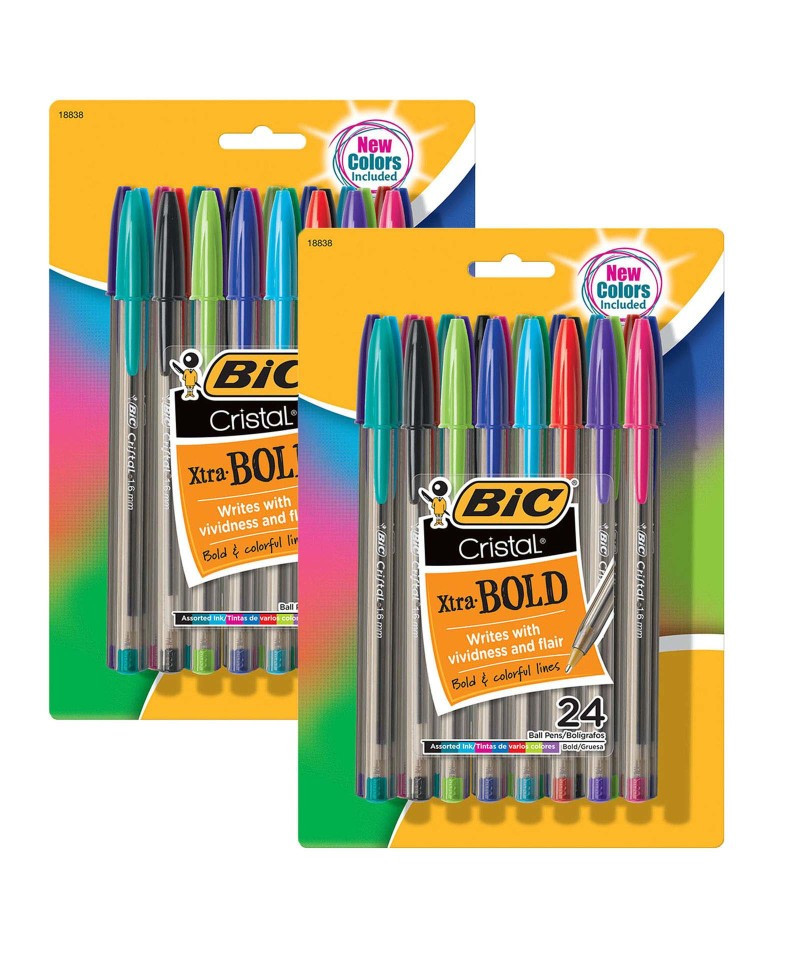 Enjoy ultra-smooth ink flow and a fluid, effortless writing experience with BIC Cristal Xtra Bold Ball Pens. Featuring a translucent smoked barrel that keeps ink supply visible, these pens offer a sleek and modern twist on the classic BIC Cristal pen design. Each pen comes equipped with a 1.6mm bold point that creates striking, vivid lines. The Easy-Glide System ink technology delivers exceptionally smooth ink flow while enhancing vividness, making the pens ideal for adding bold flair to drawings and notes. With their iconic hexagonal barrels, BIC Cristal Xtra Bold Ball Pens offer a firm and comfortable grip. Each pack includes 24 pens in assorted colors. Sold as 2 packs for a total of 48 pens.