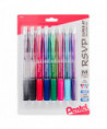 The Pentel® RSVP Super RT retractable ballpoint pen features Pentel's newest, super-smooth ballpoint ink. The special, low-viscosity ink formula doesn't drag, blob or scratch offering smoother writing than ever before. The pen includes elegant metal accents and a comfortable, contoured latex-free grip for easy, no-fatigue writing. Sleek barrel design feels great in your hand. Barrel colors match the ink color inside. The 1.0mm tip writes medium lines. Refillable with (BXL10) ink refills. Each pen is backed by a Limited Lifetime Warranty. Pack of 8 pens includes 2 black, 1 red, 1 blue, 1 green, 1 pink, 1 sky blue, and 1 violet.