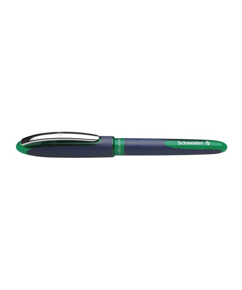 The Schneider One Business Rollerball features the innovative Super-Flow-System and Ultra-Smooth tip to guarantee consistent ink flow from start to finish for the best writing experience. Waterproof according to ink standard ISO 14145-2, the large ink reservoir has a level indicator to ensure every drop of ink is used. Cap-off ink does not run dry even if the cap is removed for 2-3 days. Ergonomic, rubberized grip zone provides a secure hold for relaxed writing. The cap has a sturdy, high-quality metal clip that fits neatly on either end of the barrel. Writes in an approximate 0.6 mm line width. The One Business Rollerball is produced CO2 neutral. Includes one (1) green ink rollerball pen.