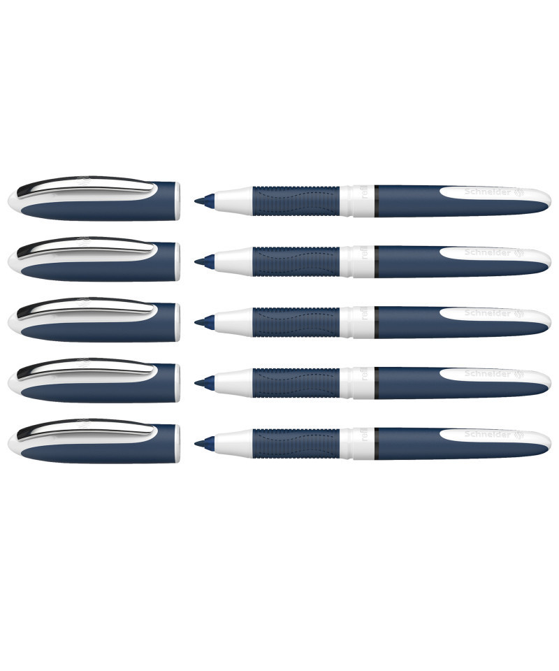 Rollerball can be refilled with the exchangeable One Change cartridge with Ultra-Smooth tip for the best writing experience. Line width approximately 0.6 mm, waterproof according to ink standard ISO 14145-2. The innovative Super-Flow-System guarantees consistent ink flow from start to finish. The cap-off ink does not run dry even if the cap is removed for 2-3 days and, besides this, is quick-drying and smudge proof. The One Change has a sturdy metal clip and a rubberized grip zone that provides a secure hold for relaxed writing. Sold as a pack of 5 pens.