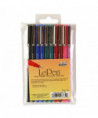 The LePen has a smooth writing micro-fine plastic point and a sleek barrel design. The ink is acid free and non-toxic. This is a 10 piece Basic Color set. Good for business forms, notebooks, diaries, memo pads, letters, journals, yearbooks, and scrapbooks. This set includes 2 each black and blue, 1 each red, green, pink, burgundy, teal, and lavender.