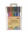 The LePen has a smooth writing micro-fine plastic point and a sleek barrel design. The ink is acid free and non-toxic. This is a 10 piece Bright Color set. Good for business forms, notebooks, diaries, memo pads, letters, journals, yearbooks, and scrapbooks. This set includes 1 each color blue, orange, lavender, pink, light blue, light green, teal, orchid, periwinkle, and amethyst.
