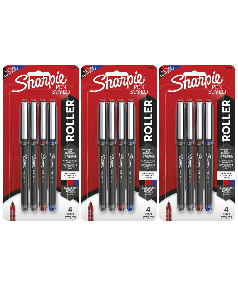 Experience a high-performance roller pen with the Sharpie Roller. This rollerball pen delivers bold ink for always vivid writing. Engineered for precision, the Sharpie pen features a needle point tip. Its premium metal clip provides a professional finish, while the translucent grip helps you quickly identify the ink color. Whether for home, office, or school, the Sharpie Roller is perfect for those looking for a precise, smooth writing pen. Each pack includes 4 pens. Sold as 3 packs for a total of 12 pens.