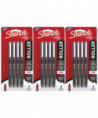 - Sold as 3 packs, each pack includes 2 black, 1 blue, 1 red rollerball pens
