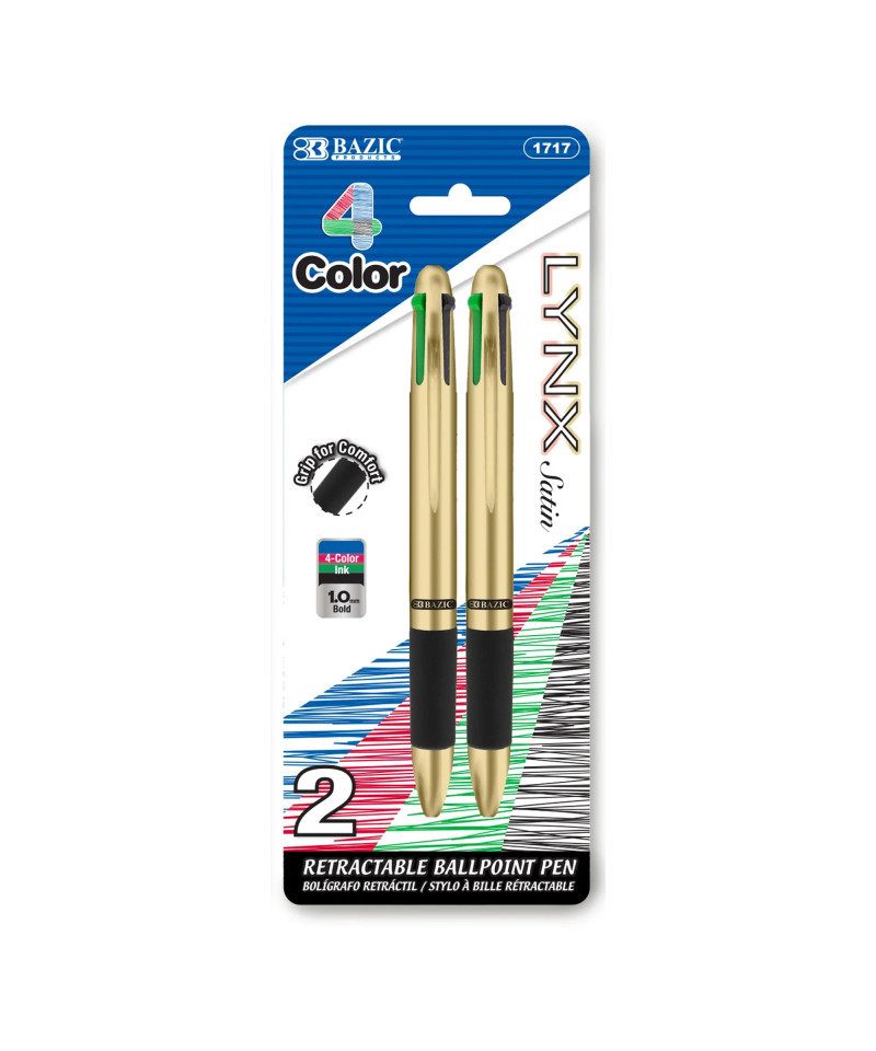 - LYNX SATIN TOP 4-COLOR PEN. Each pack includes 2 Retractable 4-Color Ballpoint Pens; Ink Color: Black, Blue, Red and Green. Barrel colors come in assorted colors