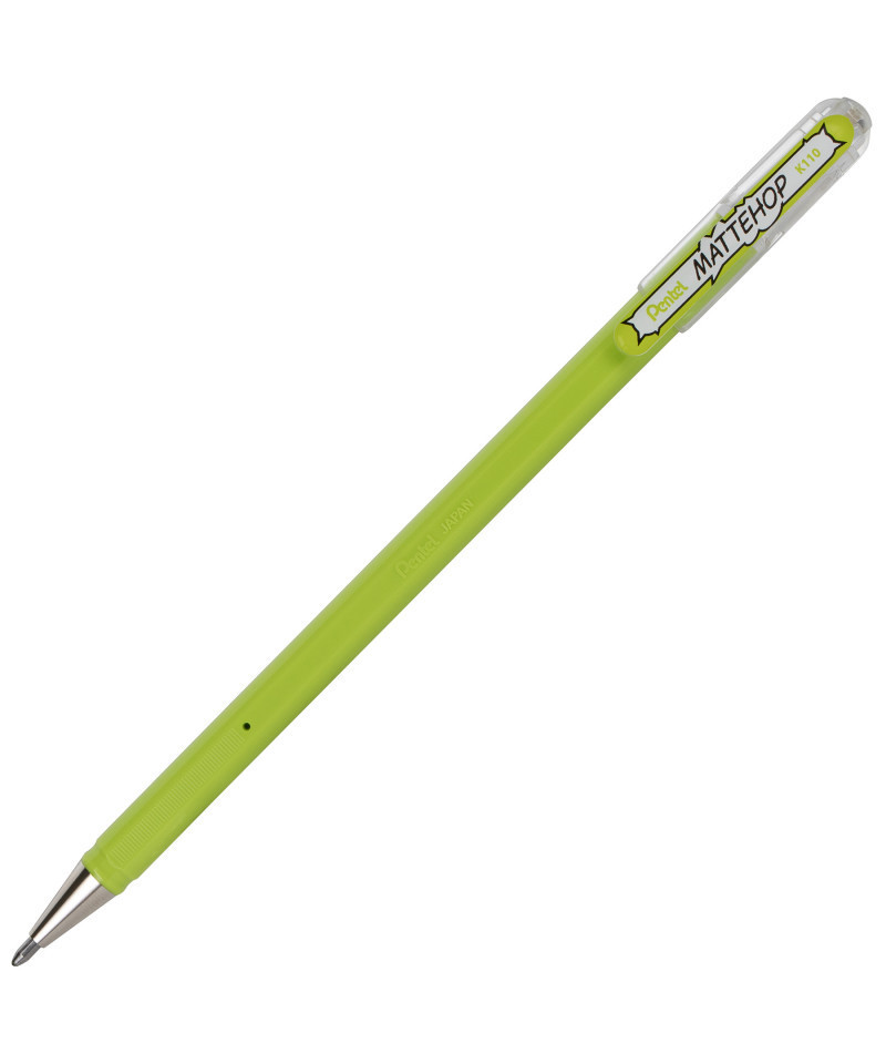 Pentel Arts Hybrid MATTEHOP Gel Roller, 1.0mm, Matte Yellow Green Ink, Pack of 12