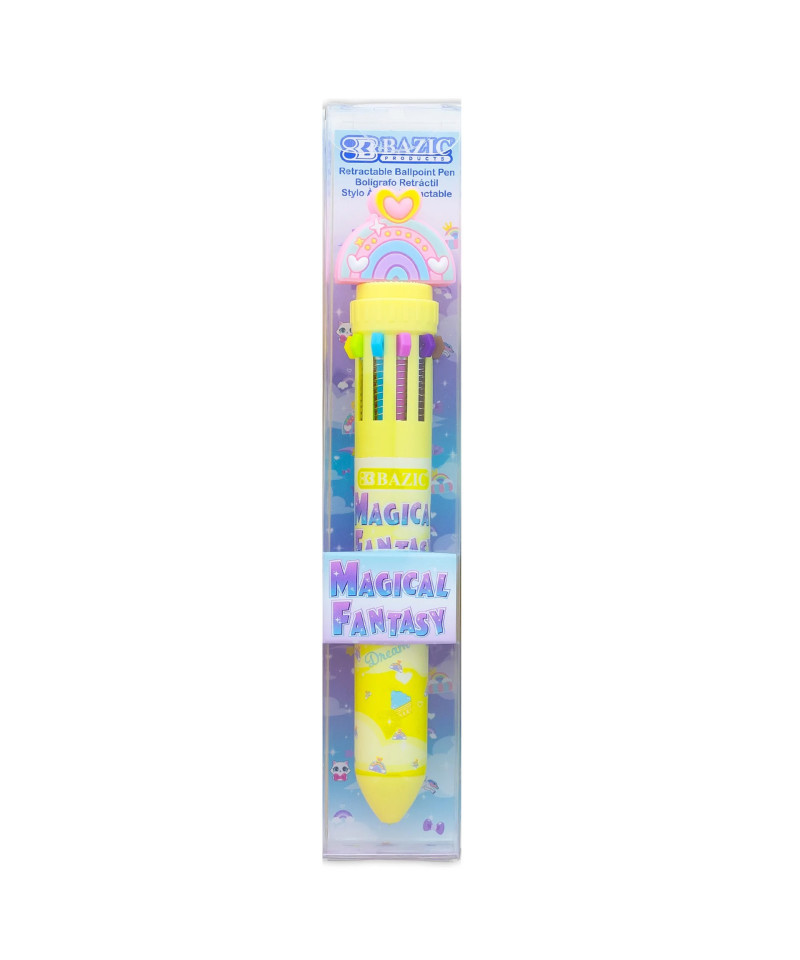 Bring your writing and creativity to life with these Magical Fantasy Series 10-Color Pens. Each pen features 10 vibrant and distinct ink colors, making it perfect for color-coding notes, adding flair to drawings, or enhancing craft projects—all without switching between multiple pens. With a simple click, you can seamlessly transition between colors thanks to the smooth retractable design that eliminates messy caps and reduces the chance of ink stains. The bold 1.0mm point delivers strong, clear lines, while the smooth, high-quality ink ensures a consistent, skip-free writing experience. Whether you're journaling, doodling, planning, or working on school or office tasks, this versatile multi-color pen is the perfect all-in-one tool. Sold in assorted pen designs, no design choice.