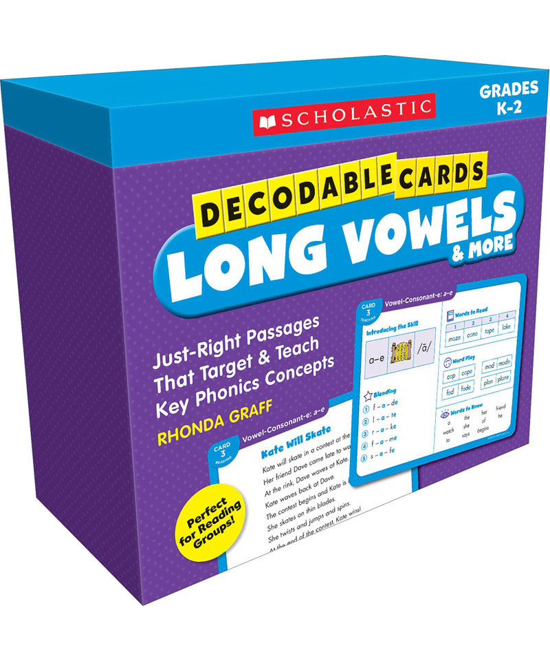 Each box contains laminated cards that target and teach must-know concepts including short vowels, long vowels, blends, digraphs, and more. The front of each card introduces the skill focus while the back challenges kids to read a just-right decodable story. Includes five copies of each card to facilitate group learning and a complete teaching guide. Enables busy educators to teach key phonics concepts in a group setting with little or no prep. Created by Rhonda Graff, a longtime mentor teacher and expert reading coach. Many reading specialists suggest that a combination of leveled reading and explicit phonics instruction is the most effective way to teach reading-this product provides explicit phonics instruction. Includes an easy-to-do assessment to ensure all learners are on track.