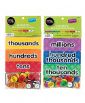 Finally... a MAGNETIC version of the most popular place value set on the market! Create and manipulate colorful place value charts on your whiteboard. Hand your students the disks for hands-on practice on lap boards too! Essential tool for all math series, especially the popular Asian math programs! Color-coded by place value. The Magnetic Place Value Disks & Headings Bundle includes 1 set each of Grades 1-3 set (140 disks (35 each of 4 places: thousands, hundreds, tens, and ones) plus 4 headings) and Grades 3-6 set (140 disks (20 each of 7 places: millions, hundred thousands, ten thousands, thousands, hundreds, tens, and ones) plus 7 headings). Disks measure 1"D. Headings measure 6"W x 2"H.