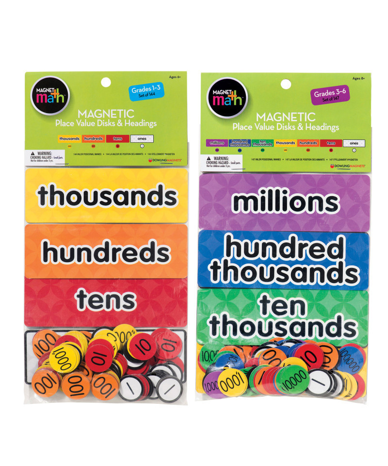 - The Magnetic Place Value Disks & Headings Bundle includes 1 set each of Grades 1-3 set and Grades 3-6 set, for a total of 291 pieces!