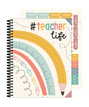 Handy teacher's helper for the professional teacher or home school. Designed for a 9-10 week grading period with 40 weeks of school and 8 classes per year. Features large squares and provides space for 35 students. Plus, a 40 week lesson planner section on the left page is goals activities resources on the right weekly assignments for 7 classes. Includes seating charts, parent meeting log, substitute teacher page, important dates, class names, note pages, and student information pages. Durable blue embossed simulated leather cover will endure frequent daily use and strong wire binding firmly keeps the planner intact throughout the year. Printed on 100% post-consumer recycled FSC certified paper with soy inks. The wire is 90% recycled and our book covers are 50% recycled. Made in the USA. Measures 8.5" x 11". Sold as a pack of 2 identical books.
