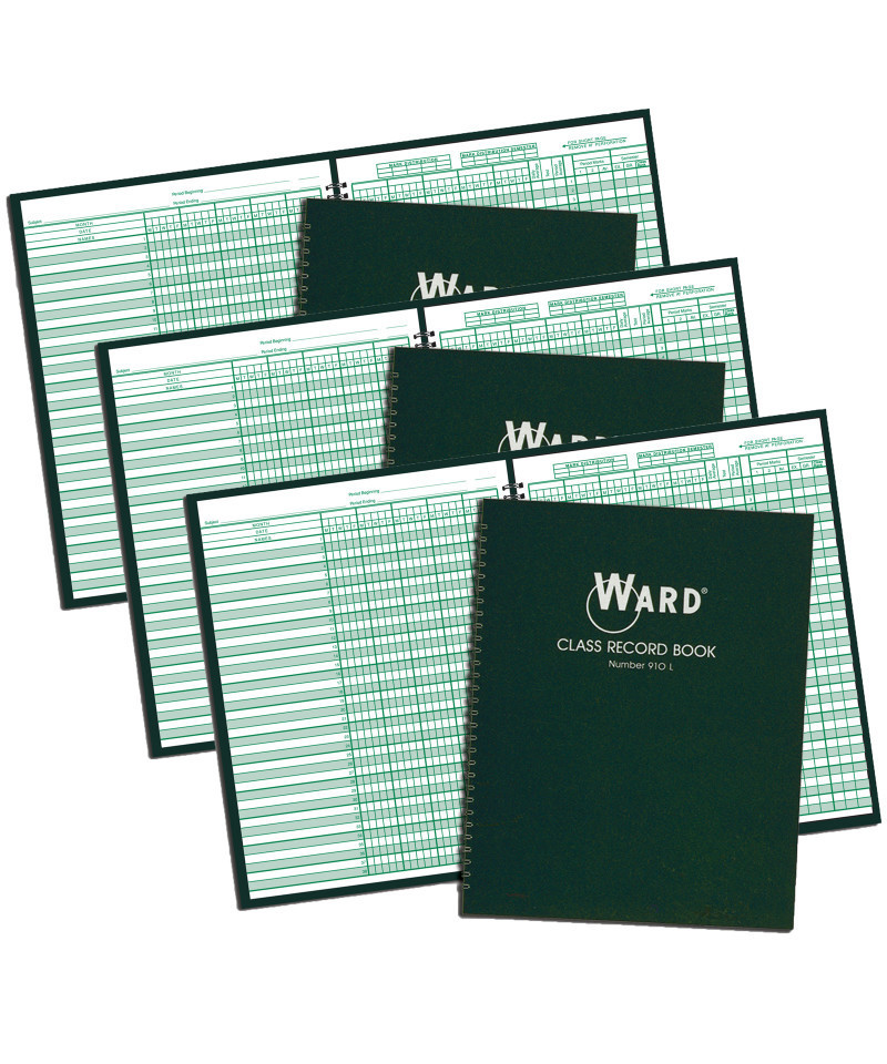 Ward books are as durable as they are functional, featuring the heavy, dark green cover material that users have come to rely on in WARD products. All WARD CLASS RECORD BOOKS are printed in green ink on quality white paper and bound in a durable, deep green cover. Semi-concealed wire binding allows the book to open flat for ease of use. Memorandum sheets and seating charts included in all books. Page size 8-1/2 x 11 with 38 student names per page. Four grading periods with grading sheets for 36 to 40 weeks of school and 16 classes per year. Sold as a pack of 3
