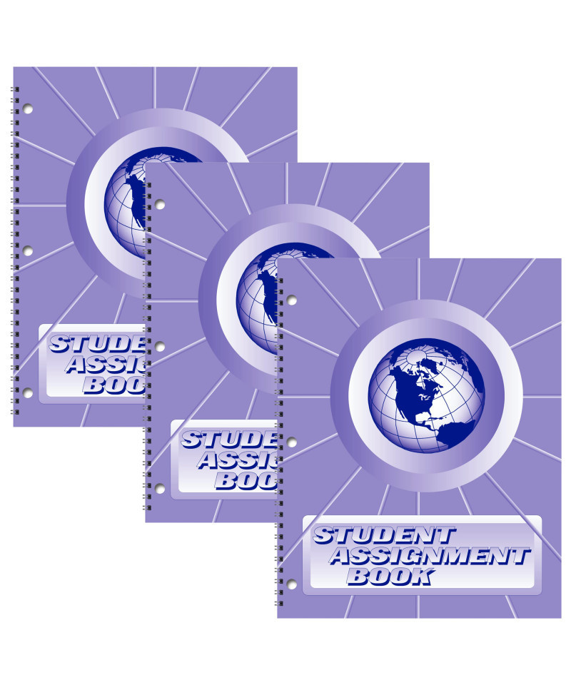 Student Assignment Book with weekly assignment sheets for up to 40 weeks of school. Includes: Homework Tips/Student Responsibilities, Class Schedule, Schedule of School Events/Long Range Assignments, and Goal/Achievement Record. 3-hole punched to fit a 3-ring binder. Sold as a pack of 3 identical books.