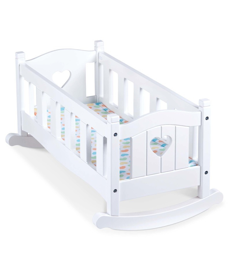 Rock to sleep favorite dolls and stuffed animals in this realistic and classically styled wooden cradle that suits any décor! Made to fit dolls up to 20 inches tall, the durable white rocking cradle with a wipe-clean surface stands approximately 10 inches tall. Clear instructions make the cradle easy to assemble with just a screwdriver (not included). Mine to Love® dolls and accessories encourage empathy and help kids express themselves as they explore grown-up roles and responsibilities. A child's confidence and self-esteem blossom and grow with each nurturing moment of imaginative play!