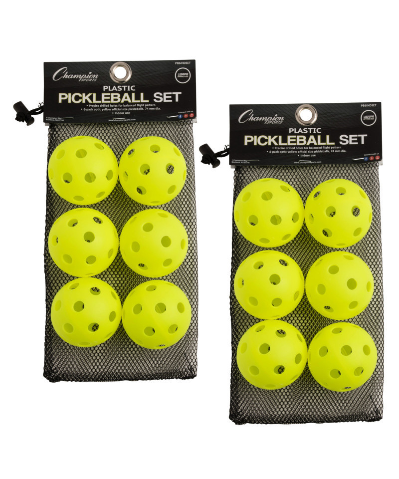 - 6 per set, sold as 2 sets, 12 official size pickleballs total