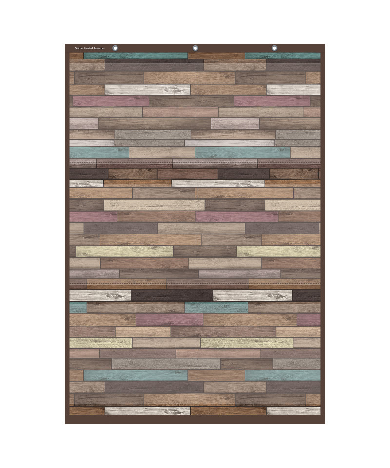 This lightweight and durable Reclaimed Wood Large 6 Pocket Chart features a rustic design and hangs easily from sturdy, metal grommets. Pockets fit 8.5" x 11" pieces of paper. The non-porous surface is easy to clean and can be wiped-down or sprayed with disinfectant to help prevent the spread of germs. Measures 26" x 38".