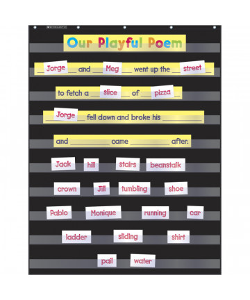 These lightweight and durable pocket charts feature colorful designs and hang easily from sturdy, metal grommets. Pocket chart measures 28" x 28". Perfect for any size sentence strips, flash cards, and more!