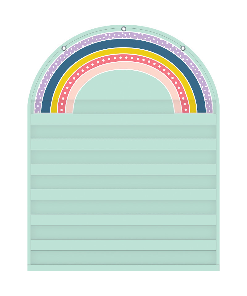 These lightweight and durable pocket charts feature colorful designs and hang easily from sturdy, metal grommets. Perfect for any size sentence strips, flash cards, and more! Pocket Chart measures 28" x 36" (cards not included).