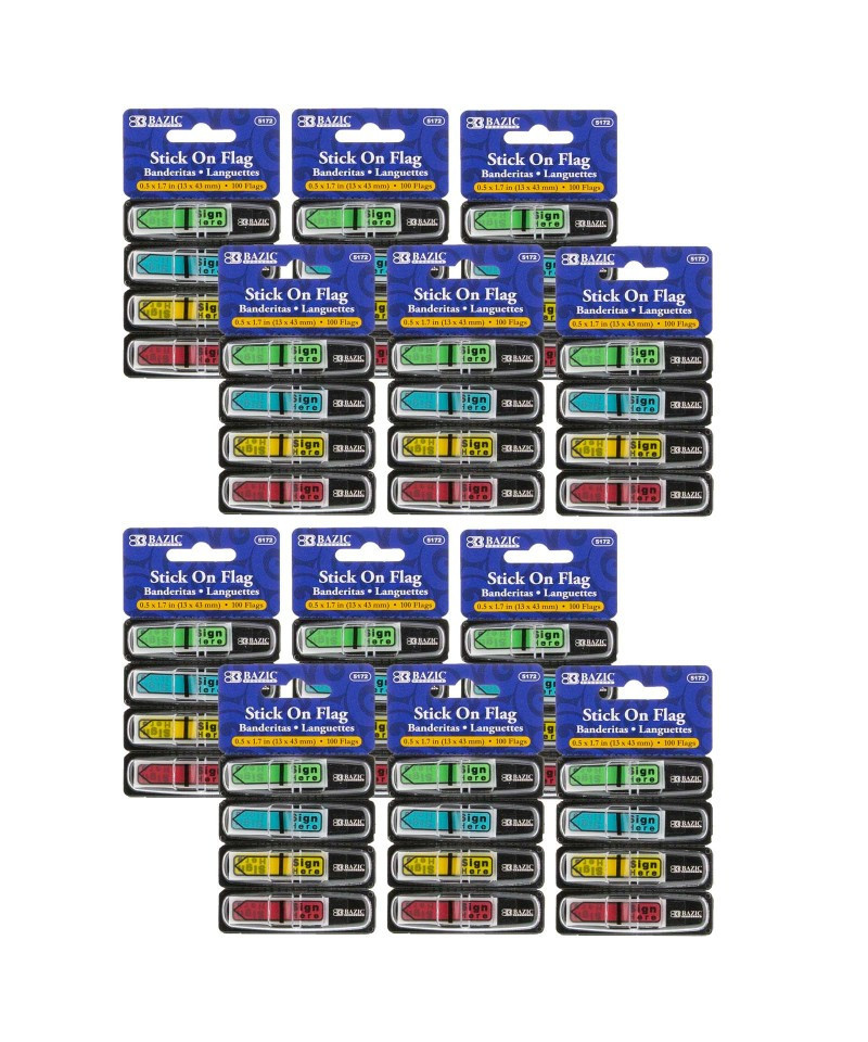 Self-stick flags adheres securely and allows repositioning with ease. Durable material prevents wear and tear from repeated handling and use. Features durable perforated cardboard dispensers with plastic cover. Colors include: Neon Blue, Neon Green, Neon Yellow and Neon Red. Measures 0.5" x 1.7". Each dispenser includes 25 flags. Each pack includes 4 dispensers for a total of 100 flags. Sold as 12 packs for a total of 1200 flags.