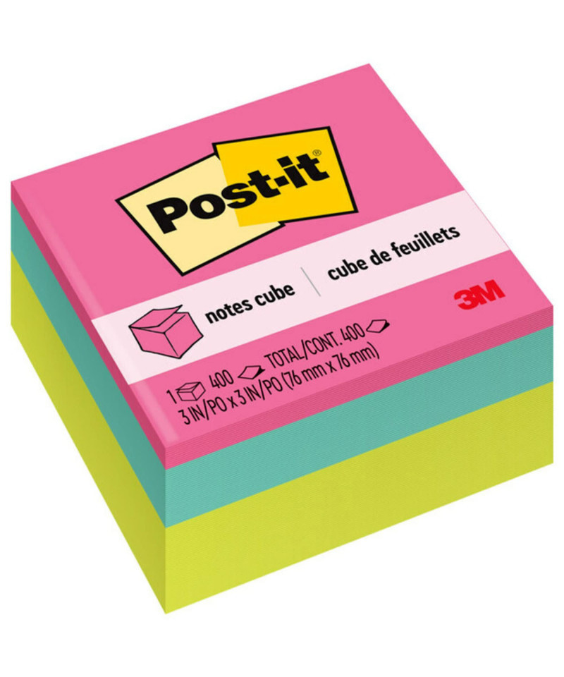 Post-it® Notes Cubes are great to have on your desk or counter so you never run out of notes for great ideas. They stick securely and remove cleanly, featuring a unique adhesive designed for use on paper. 3 in. x 3 in. size is great for reminders or quick notes, and work well with calendars or planners. The bright colors of Power Pink, Aqua Splash and Acid Lime add a pop of style to your desk. Keep anywhere you need to capture an idea or reminder. Cubes have more notes per pad than any other Post-it® Notes. Post-it® Notes are recyclable. 1 Cube/Pack, 400 Sheets/Cube.
