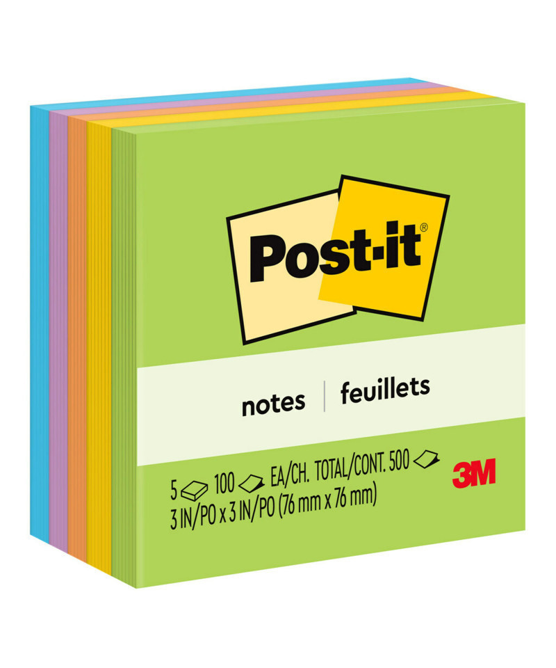 Post-it® Notes stick securely and remove cleanly, featuring a unique adhesive designed for use on paper. The 3 in. x 3 in. size is great to call out important information or leave notes for yourself or others in calendars or planners. Step into a lush garden of color to help your ideas bloom with the Floral Fantasy collection. Use to color code projects or topics. Post-it® Notes are recyclable and the paper is sourced from certified, renewable and responsibly managed forests. 5 Pads/Pack, 100 Sheets/Pad.