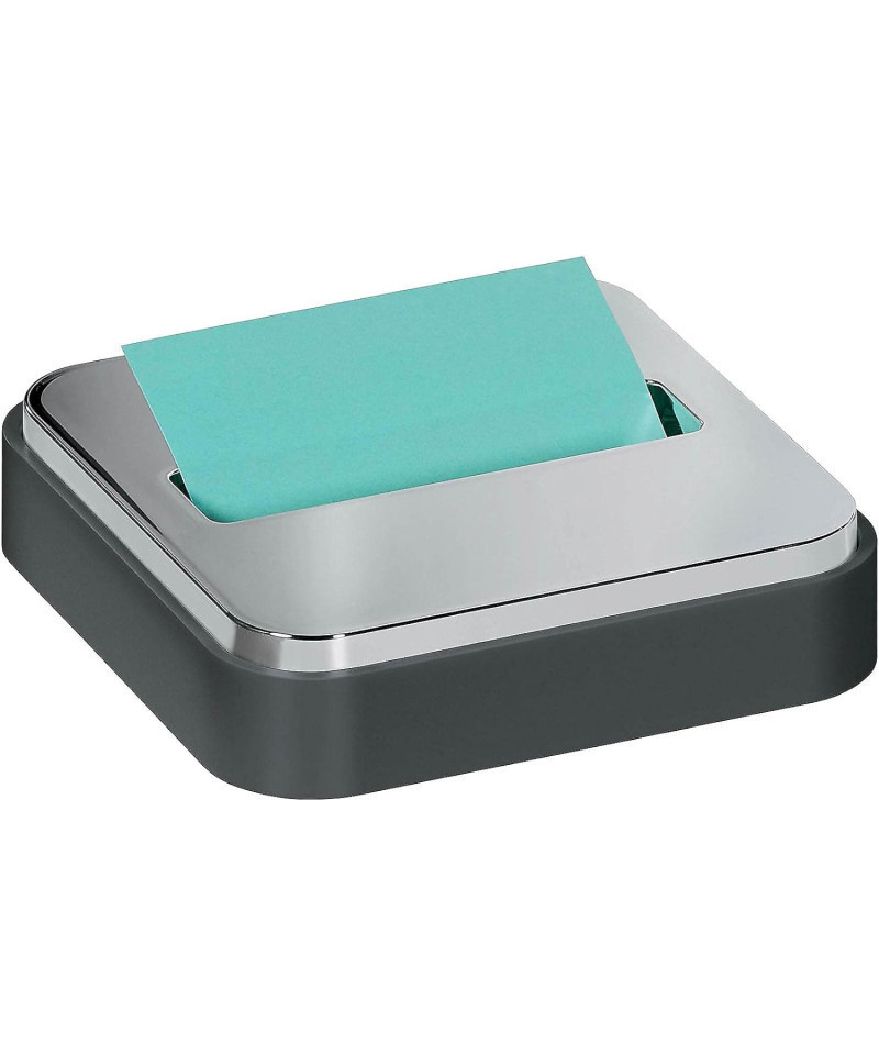 - Metallic top dispenser with black base holds 3 in x 3 in Dispenser Notes