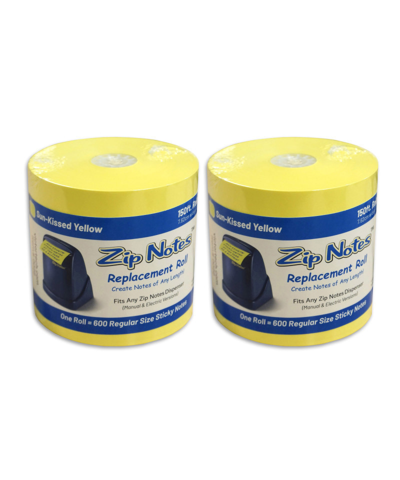 Refill roll for Zip Notes™ dispensers. Any size stick note you need, even banners. The 150-ft roll is equal to 600 3"x3" notes. Unique center adhesive for strong, yet repositionable hold. Yellow. Create any size stick note you need, even banners Sold as a pack of 2.