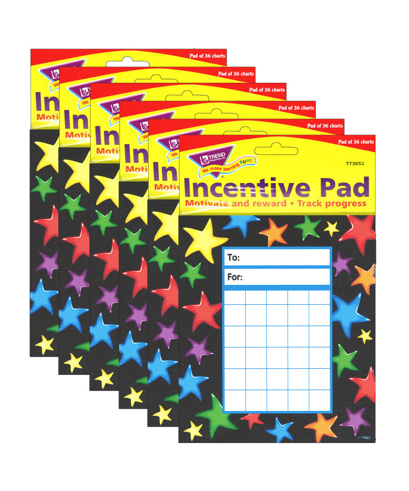 Engage students in setting goals and building skills with this popular, effective chart. Track and reward progress with colorful, coordinating stickers. 36 charts per pad, 5.25" x 6". Sold as a pack of 6 pads.