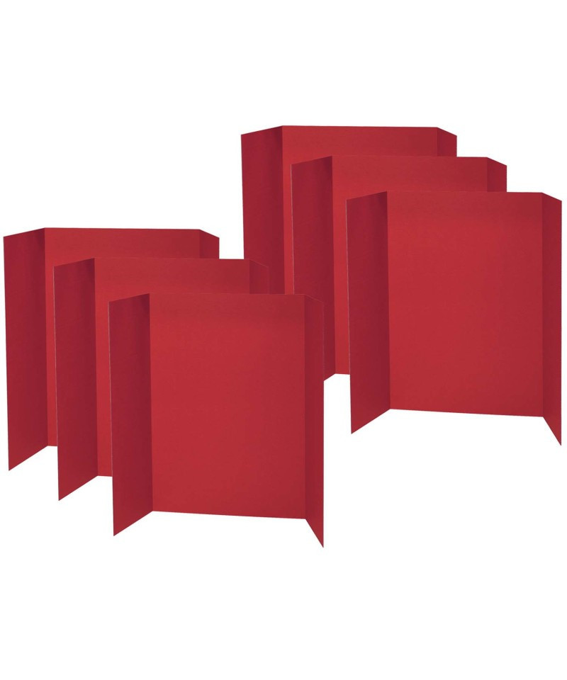 Presentation Boards are tri-fold, single wall corrugated display boards used for projects, booths, science fair presentations and all types of displays. Boards have a smooth, flat, uniform surface to accept many types of medium. Boards are Red on the front and Natural Kraft on the back. The full display size is 48" x 36" and the board folds to 24" x 36". Recyclable. Pack of 6 boards.