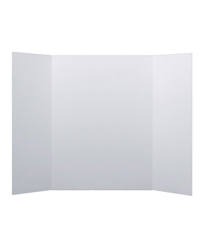 Our project display boards allow you to customize and easily create a lasting impression. The durable, smooth, bright surface has a slight glossy finish that easily allows markers, glue, paint and adhesive. These project boards are great for science fairs, presentations, picture displays, school projects and tabletop exhibits. You can easily transport your project board because of the overlapping side panels. Our project boards have color on one side and natural brown kraft on the back. Made from 1-ply corrugated paper that is 100% recyclable. Project boards measure 36" H x 48" W. Side panels measure 36" H x 12.75" W. Center panel measures 36" H x 22.5". Pack of 10 white boards.