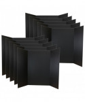 Our project display boards allow you to customize and easily create a lasting impression. The durable, smooth, bright surface has a slight glossy finish that easily allows markers, glue, paint and adhesive. These project boards are great for science fairs, presentations, picture displays, school projects and tabletop exhibits. You can easily transport your project board because of the overlapping side panels. Our project boards have color on one side and natural brown kraft on the back. Made from 1-ply corrugated paper that is 100% recyclable. Project boards measure 36" H x 48" W. Side panels measure 36" H x 12.75" W. Center panel measures 36" H x 22.5" W. Pack of 10 black project boards.