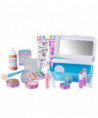 Perfect for mess-free imaginative play, THIS SET DOES NOT CONTAIN REAL COSMETICS. The 16-piece play set gives kids everything they need to play makeup artist and to practice daily skin care and makeup routines! Application brushes and play accessories for eyes, lips, and face, including an empty foundation pump bottle, compacts for pretend blush, powder, and glitter, pretend gloss and lipsticks, and a play eye shadow palette, let kids imagine different looks. Accessories look real but are toys--items do not contain cosmetics and no color is transferred, giving countless hours of mess-free imaginative play! Everything, including 2 cloth makeup wipes in a resealable pouch and a reusable activity card, stores in a portable, durable makeup kit with built-in mirror! Role playing real-life experiences with Love Your Look play sets is a great way for kids three and older to build confidence, empathy, and self-esteem.